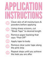 • Lift, flatten, reduce movement, boost, or create cleavage with Boob Tape!