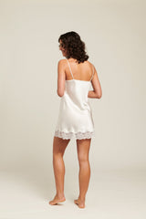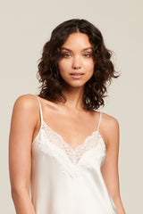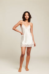 Silk Basics by GINIA are modern silk essentials for every day. A collection of beautifully curated pieces that work independently and in combination. Designed to be worn and loved every day. The Silk Lace Chemise is an enduring romance, made in soft silk and detailed with delicate hand-cut lace to celebrate the female form. A classic V-neck slip style that falls to the knee. Spaghetti straps from the same silk are adjustable for a perfect fit.