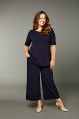 This wide leg culotte designed pant in French Navy is perfect for work and weekend wear. The panel detail hem gives it a stylish finish. This wide leg and straight style suits many body shapes and is an essential wardrobe piece for holidays.