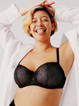 The Day to Night Lace Full Demi Bra offers a light look and feel with more coverage than the traditional demi bra shape. This elevated everyday bra features a delicate lace, sheerness along the neckline and a soft opaque knit cup.