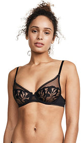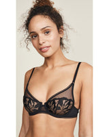 Beautiful underwired bra with full coverage cups for a comfortable fit. Sheer tulle cups adorned with a luxurious embroidered leaf design for a light and natural look. Centre lined for support with adjustable straps and stretch tulle back and trims for added comfort.
