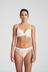 Are you looking for a preformed bra with a fresh, summery look? Then this padded bra with colorful embroidery is for you. The sleek trim on the cups contrasts beautifully with the opulent embroidery. Fresh embroidery in bright summer colors against delicate white: That's Geisha in a nutshell.