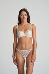 Opulent floral embroidery in a fresh, summery color palette adorns the cups and the straps on this padded balcony bra. The epitome of sophistication! This sumptuous balcony bra highlights the curve of your breasts while offering the comfort and support of padded cups. Pearled Ivory is a summer must-have: A gorgeous mix of off-white, bright watercolors, and silver.
