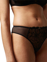 Revealing thong silhouette with lush floral embroidery and honeycomb fishnet details come together to create a unique, seductive look in the Fleur Thong. - Revealing back