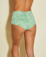Our iconic soft Italian floral lace collection known for its innovative stretch and return in an array of shimmering colors. The top selling Never Say Never lace Collection is a must-have for any lingerie wardrobe. The Never Say Never High Rise Bikini has a flattering high rise fit and full coverage back.