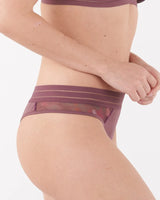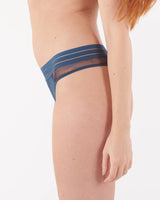 This playful tanga combines a semi sheer look with front coverage and cheeky behind.