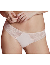 Promising the perfect mix of sensuality and comfort, the invisible under clothing Promesse Bikini Brief pairs laser-cut opaque knit with intricate Leavers lace. Featuring a decorative lace front with a cotton underlay for increased modesty and inlayed lace on the sides – your everyday staple just got interesting.