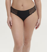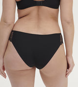With its figure contouring fabric and clean-cut seams for discrete under-clothing wear, the Escale Bikini Brief is the luxury lingerie staple every woman needs. Soft lace, featuring contemporary geometric florals, adorns each hip point elongating the leg and creating a vintage-luxe look. A cotton lined gusset for all-day wearability and mid-waist cut make these briefs ideal for every occasion – from desk to dinner and everything in between. Part of the SIMONE CARES eco-friendly line the lace of this piece contains 62% of recycled polyamide from production remnants.