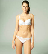 The Reflet Bikini Brief is a knitted fabric and tulle panty with an embroidered tulle front, lined with cotton for greater opacity. A knitted fabric back with a clean-cut finish makes this lingerie invisible under clothing, while a narrow microfibre underwear band means this brief sits comfortably at the waist. A unique Spirograph design and tattoo-effect Romanian embroidery, crafted from recycled materials, finishes the look with a feminine touch.
