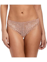 Marrying luxurious lace with elegant simple styling, the Lace Perfection Tanga offers a low rise style with minimal back coverage, crafted from complete stretch lace with a feminine scallop edge in Rose Mist. Available in sizes S - XL.