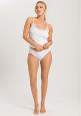 This HANRO top with spaghetti straps from the Michelle series is the perfect top for lovers of cotton and anyone who loves maximum comfort. It is seamless on the hem and sides. This gives the top a noticeable touch of luxury and also makes it perfect as an undershirt. The visual highlight is the exclusive embroidery on the neckline.