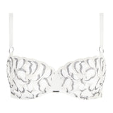 With lush floral embroidery through the cups that are transparent and seductive, the Fleur Demi embodies softness and femininity. - Open yet contained demi neckline with soft vertical seam for uplift and top swell effect