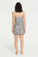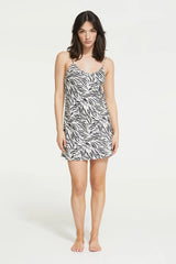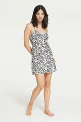 Versatility is key, even in sleepwear. The Zafina Chemise effortlessly transitions from loungewear to daywear, making it a versatile addition to your wardrobe. Featuring a brushstroke zebra print, fine adjustable shoulder straps and a v-neck.