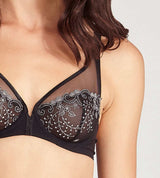 The Delice Full Cup Plunge is as comfortable as it is pretty. A scarf shape deep plunge neckline in an embroidered full cup provides support and control, with a subtle hint of cleavage. Available up to a G cup, all sizes feature a rigid tulle lined lower cup and strap base for shape. While D cup upwards features responsive knit and flat binding to further support and cover the bust.