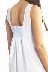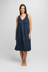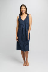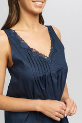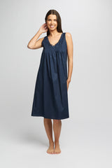 Feel fresh as a daisy in our superbly soft and pretty self spot cotton nightie. It is light weight and breathable to keep you cool and comfortable. Featuring a lace trim neckline with pintucks and flat shoulder straps as well as an elasticated band in the back of the nightie for extra stretch and comfort.