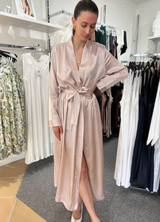 - This beautiful silk robe features a wrap-around style that falls to just above the ankles.