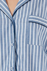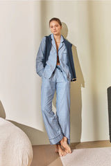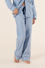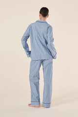 Gingerlilly - Octavia Striped Cotton Long Pj Set | Blue Stripe