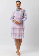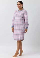 Introducing our Check Ski Nightie! Made from soft 100% cotton jersey, this nightie features a cosy plaid check print. With rib trim detailing on the neck and cuffs, you'll be comfortable and stylish all night long. Perfect for staying warm on those chilly nights.