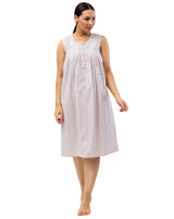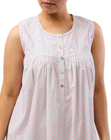 This sleeveless Geo Nightie is made from 100% woven cotton, giving it a soft and breathable feel. The Geo print adds a touch of style, while the satin piping on the neck and armholes elevate its look. With pintuck detailing on the yoke, this nightie is both comfortable and stylish.