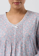 Stay stylish and comfortable with our Paisley Crochet Nightie! The modern paisley print adds a touch of sophistication, while the soft cotton jersey ensures a cosy feel all night long. Featuring a delicate crochet trim on the vee neck and elegant pleating, this nightie is the perfect blend of fashion and comfort. Sweet dreams await you!