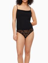 CK BLACK is our luxury range of irresistibly feminine underwear and nightwear. This bodysuit features adjustable shoulder straps, square neckline, low cut back, and logo detailing.