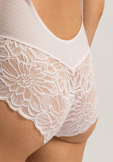The highlight of the Marilyn collection, a fashionable bodysuit with special back detail for a perfect fit; inspired from the company archives. This style pays homage to the legendary Hollywood icon Marilyn Monroe and comes with an exclusive Hanro 140-year Anniversary hangtag.