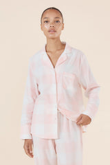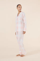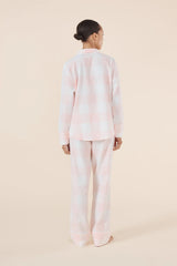 The Buffalo Check Brushed Cotton Pyjama Set in pink and white is the ultimate essential for the colder months. Designed in soft, breathable brushed cotton, this relaxed set features a classic buffalo check print that adds a chic yet laid-back feel. The wide-leg trousers feature side pockets and an adjustable waist tie for a comfortable fit. Whether it’s for lounging or sleeping, this timeless set is one to wear on repeat.