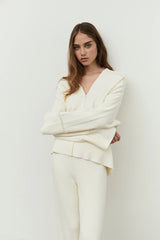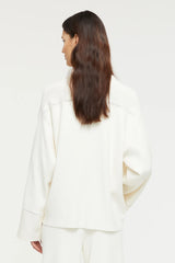 The Lu Lounge story is a beautiful mix of soft cream cotton and cashmere. The cardi is an oversized fit, featuring a button down front with ladder detailing. The perfect go-to wardrobe staple!