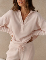 Papinelle - Super Soft Waffle Open Collared LS Top | Rose