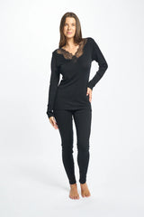 There is nothing quite as warm and soft as Love & Lustre's Wool range.The Ultra Fine Merino Wool/Silk Long Sleeve Top is Love and Lustre most loved range for this winter. Knitted from Ultra-fine 18.5 micron Australian Merino Wool blended with 15% silk, this range is designed to give a layer of luxurious soft stretch & warmth. The french inspired Leavers Lace elevates this piece providing for the option to be worn as inner wear or elegant outerwear. A natural fiber, Merino Wool is highly breathable, naturally insulating and odour resistant.