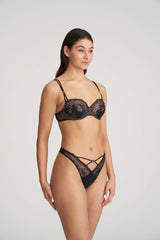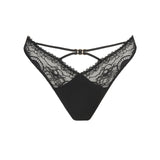 The stunning Junoo thong, made from Italian lace with a snakeskin print will add a seductive touch to your lingerie set. Timeless black is the perfect foundation color and a must-have in every wardrobe. The gold accents adding a touch of glamour.