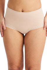 Nancy Ganz 'Revive Lace' waisted brief is the essence of beauty, comfort and support. Contemporary lace design, super soft fine gauge micro and performance power mesh linings, create the perfect everyday shapewear with feminine appeal and superior comfort and fit.