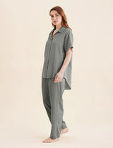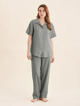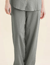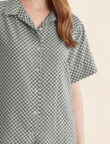 A soft PJ set made from breathable cotton and Lenzing Ecovero Viscose in a French girl chic check print.
