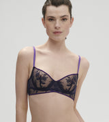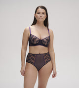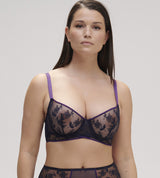 The Adèle Half-Cup Bra in Midnight evokes a fashion-forward yet romantic feel – its detailed embroidery and violet straps almost too pretty to be kept under clothing. Designed in a retro-bustier style, the wide band provides a comfortable fit that will flatter all bust shapes, delivering gentle lift and a natural, rounded shape. Sheer, underwired cups embellished with playful floral embroidery and contrasting trim add to Adèle’s an on-trend lingerie look.