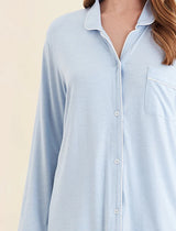 • Button-up, long-sleeve top with collar