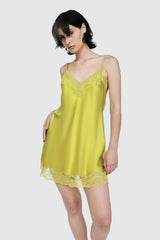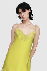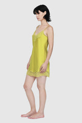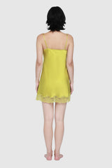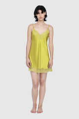 The Silk Chemise in Chartreuse is an enduring romance, made in soft silk and detailed with delicate hand-cut lace to celebrate the female form. A classic V-neck slip style that falls to the knee. Spaghetti straps from the same silk are adjustable for a perfect fit. Silk Basics by Ginia are modern silk essentials for every day. A collection of beautifully curated pieces that work independently and in combination.