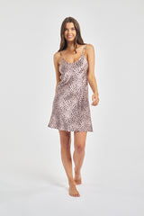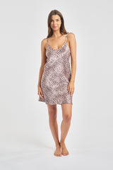 Features adjustable straps and a flattering v-shaped neckline. Worn for the perfect night sleep or the best night out, pair with matching robe or mix and match with our Leopard Robe to complete the lux look. Available in a range of seasonal colours and prints.