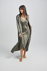 - This beautiful silk robe features a wrap-around style that falls to just above the ankles.