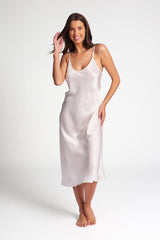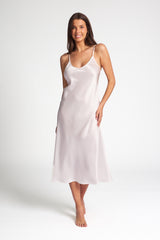 A beautiful premium quality silk chemise that drapes over the figure gracefully. So comfortable to wear and ideal to sleep in. Love & Lustre’s exclusive silk range is simple but sophisticated for today’s modern woman. Features fine adjustable straps and a flattering v-shaped neckline. The length is below the knee. Our model is 173 cm or 5’8″.