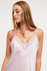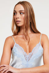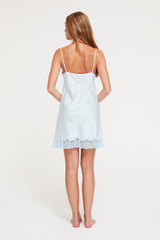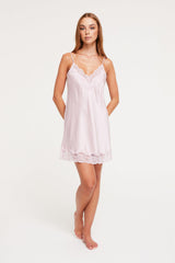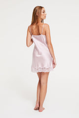 An enduring romance, made in soft silk and detailed with delicate hand-cut lace to celebrate the female form. A classic v-neck Chemise Slip style that transitions with ease between classic sleep/loungewear to an elegant daywear style.
