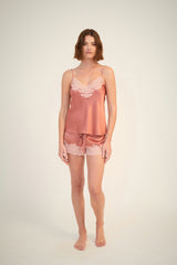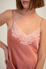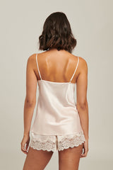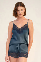 Silk Cami With Lace. An enduring romance, made in soft silk and detailed with delicate hand-cut lace to celebrate the female form.