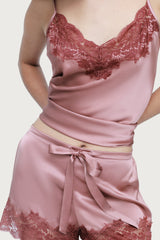 The Silk Shorts in Mauve are an enduring romance, made in soft silk and detailed with delicate hand-cut lace to celebrate the female form. A mini-short that sits comfortably on the hip. With an elasticated back, and drawstring front for the perfect fit. Finished with a decadent 3" lace trim. Silk Basics by Ginia are modern silk essentials for every day. A collection of beautifully curated pieces that work independently and in combination. Designed to be worn and loved every day.