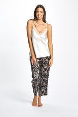 A beautiful premium quality silk cami that drapes over the figure gracefully. So comfortable to wear and ideal to sleep in. Features adjustable straps and a flattering v-shaped neckline with a gorgeous fine lace detail. The fine lace is also featured in the back of the camisole. Perfect to pair with Love & Lustre’s Silk short.