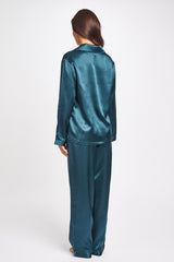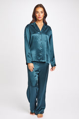 A beautiful premium quality silk piped PJ set that drapes over the figure gracefully. So comfortable to wear and ideal to sleep in. Features covered buttons and a collared neckline with a gorgeous piping detail.
