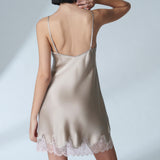The Nocturne Chemise in makes a pleasure of the night. Drape yourself in satin finished with French-rolled seams, delicate lace trim and a band of tulle that highlights the neckline and frames your décolletage. Linger a while in this intimate piece of nightwear to truly feel its spoils. Add a little extra flair to your silk pyjamas with this sophisticated chemise.