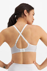 - Mesh in the cup and back provides breathable panels for a cooler workout