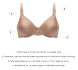 - Seamless underwire cups minimize while still creating a rounded, natural shape