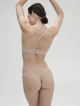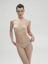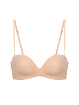 The Essentiel Multi-Position Strapless Plunge Bra is crafted with monoblock knitted fabric for a sweet and sexy piece of lingerie. This bra offers complete comfort and support, featuring an elastic bandeau and super soft moulded cups for a rounded bust lift. The plunging neckline compliments and accentuates your décolletage, while removable pads for cup sizes A-C allow you to achieve a fuller bust size. Multiway straps are removeable, allowing you to wear this bra four ways. Wear it as a halter-neck, crossover, keep the straps straight, or simply remove them to match any outfit. The back features two layers of fabric and rubber support invisibility and comfort when worn strapless, making this piece the push-up partner for any strapless outfit.