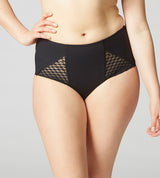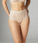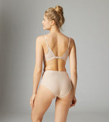 The Subtile High-Waisted Full Brief utilises control mesh, responsive knitted fabric and French lace for a body-shaping and curve-defining effect. This brief, as with every garment in the Subtile Collection, forges functionality, technique and femininity – to create a comfortable, modern brief. Tight-knit sculpting material is juxtaposed against triangular lace slits on each side of your hips for ultimate definition. These panties control and smooth your tummy, while the clean-cut edging along your derrière make them invisible under clothing.