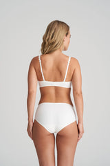 The Marie Jo Tom Padded Heart Shape Bra is now available in the stunning, versatile Natural colour, perfect for adding sophistication to your lingerie collection. Designed with a bold, high-cut upper cup and a daring plunge that creates a deep neckline between the breasts, this bra is all about making a statement. It offers excellent coverage on top while the sheer tulle back adds a touch of elegance and provides additional support. The versatile straps can be worn either over the shoulders or around the neck, offering flexibility and styling options.